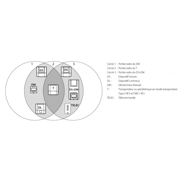 Sa conception robuste en ABS blanc, avec protection IP40 et IK07, lui assure fiabilité et résistance. Compatible avec la gamme TT4-RF/TT4-RF2/TT4-RF3, ce dispositif bénéficie de la gestion de priorité incendie/menace et du mode 2 sons PPMS.