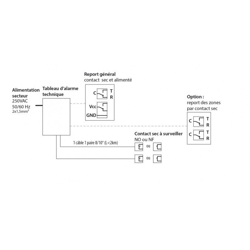 Contacts secs d'alarme | 12 Vdc – 50 mA |
