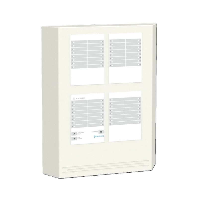 L’alarme technique AT48 Neutronic est conçue pour surveiller efficacement jusqu’à 48 zones de détection. En cas de défaut, elle active un signal sonore et lumineux, garantissant une identification rapide des anomalies. Son alimentation principale en 230 V – 50 Hz est complétée par une batterie de secours Ni-MH ou Ni-Cd 12 V offrant jusqu’à 48 h d’autonomie sur contacts NO et 24 h sur contacts NF.