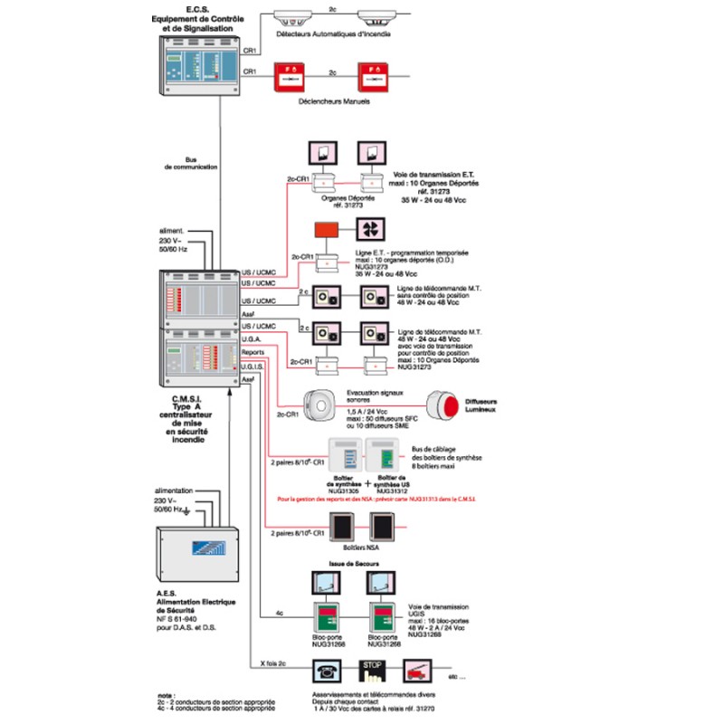 | Alimentation des DAS | externe obligatoire (AES requise selon configuration ET) |